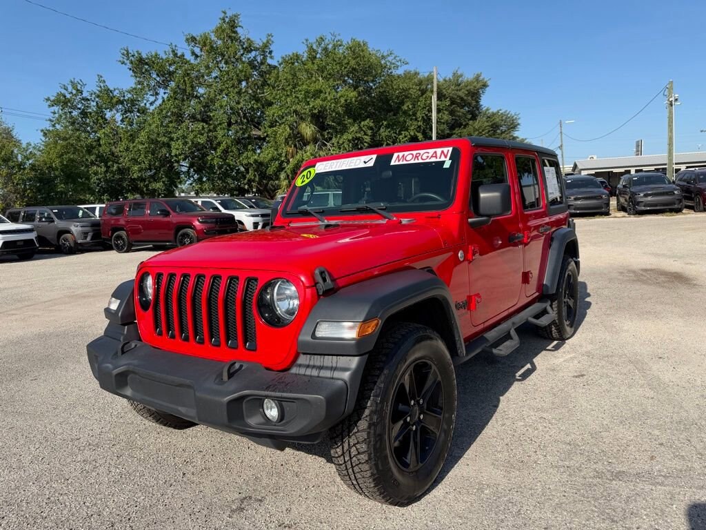 Recent Arrival! 2020 Jeep Wrangler Unlimited Sport Altitude BACKUP CAMERA, SUPER CLEAN, MUST SEE, WELL MAINTAINED, REGULAR OIL CHANGES, CARFAX RECORDS AVAILABLE, BLUETOOTH, Altitude Package, Anti-Lock 4-Wheel Disc HD Brakes, Automatic Headlamps, Black 3-Piece Hard Top, Black Interior Accents, Body Color Grille w/Gloss Black, Bridgestone Brand Tires, Deep Tint Sunscreen Windows, Freedom Panel Storage Bag, Front 1-Touch Down Power Windows, Heavy Duty Suspension w/Gas Shocks, Leather Wrapped Steering Wheel, Matte Black Jeep Badge, MOPAR Hardtop Headliner, No Soft Top, Power Heated Mirrors, Quick Order Package 22L Altitude, Rear Window Defroster, Rear Window Wiper/Washer, Remote Keyless Entry, Security Alarm, Speed Sensitive Power Locks, Sun Visors w/Illuminated Vanity Mirrors, Wheels: 18" x 7.5" Gloss Black Aluminum, Wizard Black Instrument Panel Bezels, Wrangler Decal, 1-Year SiriusXM Radio Service, 3.45 Rear Axle Ratio, 4-Wheel Disc Brakes, 7.0" Touchscreen Display, 8 Speakers, ABS brakes, Air Conditioning, Air Conditioning w/Auto Temperature Control, Air Filtering, AM/FM radio, Apple CarPlay (DISC), Aux Battery, Blind Spot & Cross Path Detection, Brake assist, Cloth Low-Back Bucket Seats, Cluster 7.0" TFT Color Display, Compass, Delay-off headlights, Driver door bin, Driver vanity mirror, Dual front impact airbags, Dual front side impact airbags, Electronic Stability Control, Front anti-roll bar, Front Bucket Seats, Front Center Armrest w/Storage, Front fog lights, Front reading lights, Google Android Auto (DISC), GPS Antenna Input, Injection Molded Black Rear Bumper, Integrated Center Stack Radio, Integrated roll-over protection, Integrated Voice Command w/Bluetooth, LED Taillamps, Low tire pressure warning, Manufacturer's Statement of Origin, Non-Lock Fuel Cap w/o Discriminator, Normal Duty Suspension, Occupant sensing airbag, Outside temperature display, ParkSense Rear Park Assist System, ParkView Rear Back-Up Camera, Passenger door bin, Passenger vanity mirror, Power steering, Quick Order Package 23L Altitude, Radio data system, Radio: Uconnect 3 w/5" Display, Radio: Uconnect 4 w/7" Display, Rear anti-roll bar, Rear reading lights, Safety Group, SiriusXM Satellite Radio, Speed control, Split folding rear seat, Steering wheel mounted audio controls, Stop-Start Dual Battery System, Tachometer, Technology Group, Telescoping steering wheel, Tilt steering wheel, Traction control, Trip computer, USB Host Flip, Variably intermittent wipers, Wheels: 17" x 7.5" Black Steel Styled, Altitude Package, Anti-Lock 4-Wheel Disc HD Brakes, Automatic Headlamps, Black 3-Piece Hard Top, Black Interior Accents, Body Color Grille w/Gloss Black, Bridgestone Brand Tires, Deep Tint Sunscreen Windows, Freedom Panel Storage Bag, Front 1-Touch Down Power Windows, Heavy Duty Suspension w/Gas Shocks, Leather Wrapped Steering Wheel, Matte Black Jeep Badge, MOPAR Hardtop Headliner, No Soft Top, Power Heated Mirrors, Quick Order Package 22L Altitude, Rear Window Defroster, Rear Window Wiper/Washer, Remote Keyless Entry, Security Alarm, Speed Sensitive Power Locks, Sun Visors w/Illuminated Vanity Mirrors, Wheels: 18" x 7.5" Gloss Black Aluminum, Wizard Black Instrument Panel Bezels, Wrangler Decal. Firecracker Red Clearcoat CARFAX One-Owner.